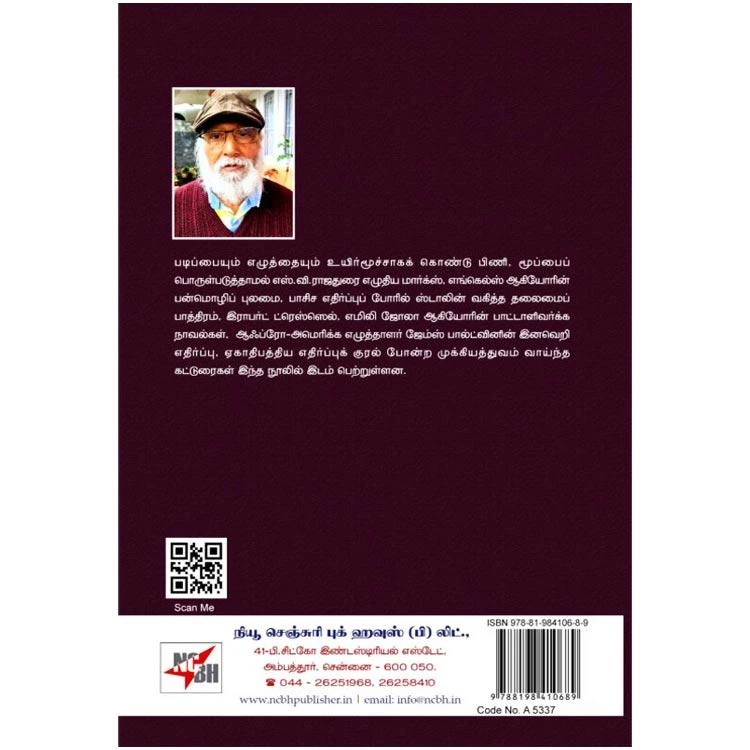 Details : Edition : 1 ISBN : 9788198401689 Category : Articles Author : S.V. Rajadurai Weight : 200.00gm Binding : Paper Back Language : Tamil Publishing Year : 2024 Pages : 80 Code no : A5337 மார்க்ஸ் எங்கெல்ஸ்: பன்மொழிப் புலமை : படிப்பையும் எழுத்தையும் உயிர்மூச்சாகக் கொண்டு பிணி. மூப்பைப் பொருள்படுத்தாமல் எஸ்.வி.ராஜதுரை எழுதிய மார்க்ஸ், எங்கெல்ஸ் ஆகியோரின் பன்மொழிப் புலமை, பாசிச எதிர்ப்புப் போரில் ஸ்டாலின் வகித்த தலைமைப் பாத்திரம், இராபர்ட் ட்ரெஸ்ஸெல், எமிலி ஜோலா ஆகியோரின் பாட்டாளிவர்க்க நாவல்கள், ஆஃப்ரோ-அமெரிக்க எழுத்தாளர் ஜேம்ஸ் பால்ட்வினின் இனவெறி எதிர்ப்பு. ஏகாதிபத்திய எதிர்ப்புக் குரல் போன்ற முக்கியத்துவம் வாய்ந்த கட்டுரைகள் இந்த நூலில் இடம் பெற்றுள்ளன. |