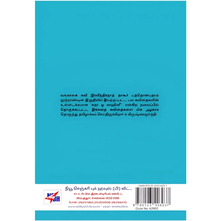 Details : Category : Articles ISBN : 9788123426037 Author : Rabindranath Tagore Weight : 100.00 gm Binding : Paper Back Language : Tamil Publishing Year : 2014 Code no : A2952 Pages : 108 கவிதையில் கதைகள் : வங்காளக் கவி இரவீந்திரநாத் தாகூர் பத்தொன்பதாம் நூற்றாண்டின் இறுதியில் இயற்றப்பட்ட பல கவிதைகளின் உள்ளடக்கமான ‘கதா ஓ காஹினீ’ என்கிற தலைப்பில் தொகுக்கப்பட்ட இக்கதை கவிதைகளை மிக அழகாக தொகுத்து தமிழாக்கம் செய்திருக்கிறார் சு.கிருஷ்ணமூர்த்தி. |