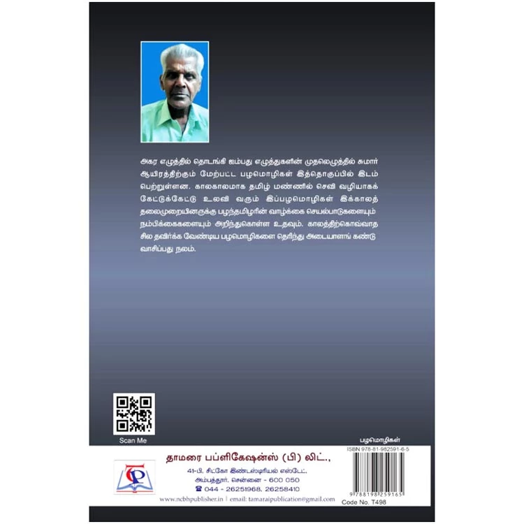 Details : Edition : 1 ISBN : 9788198259165 Category : Essays Author : M.A.Pazhaniyappan Weight : 100.00gm Binding : Paper Back Language : Tamil Publishing Year : 2024 Pages : 80 Code no : T498 பவனிவரும் பழமொழிகள் : அகர எழுத்தில் தொடங்கி ஐம்பது எழுத்துகளின் முதலெழுத்தில் சுமார் ஆயிரத்திற்கும் மேற்பட்ட பழமொழிகள் இத்தொகுப்பில் இடம் பெற்றுள்ளன. காலகாலமாக தமிழ் மண்ணில் செவி வழியாகக் கேட்டுக்கேட்டு உலவி வரும் இப்பழமொழிகள் இக்காலத் தலைமுறையினருக்கு பழந்தமிழரின் வாழ்க்கை செயல்பாடுகளையும் நம்பிக்கைகளையும் அறிந்துகொள்ள உதவும். காலத்திற்கொவ்வாத சில தவிர்க்க வேண்டிய பழமொழிகளை தெரிந்து அடையாளங் கண்டு வாசிப்பது நலம். |