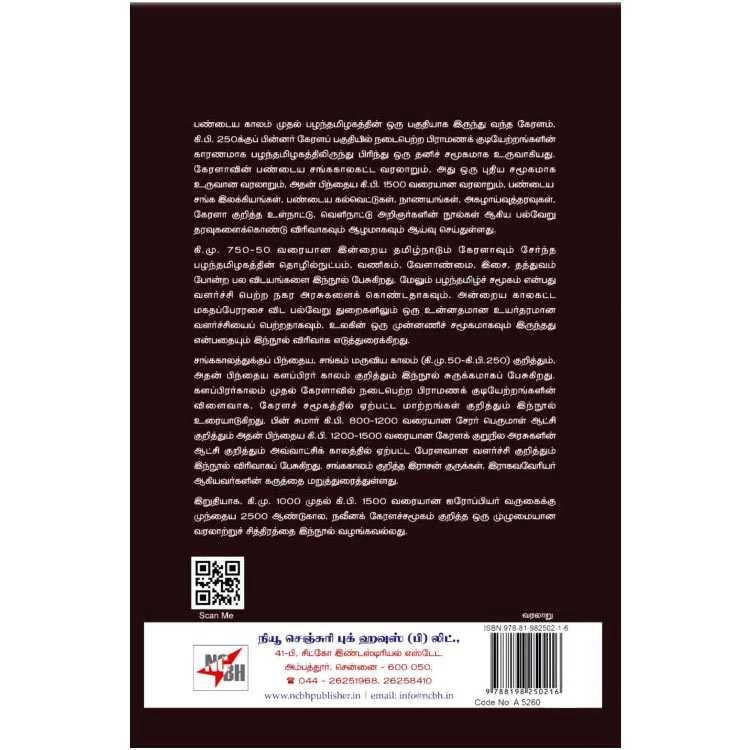 Details : Edition : 1 ISBN : 9788198250216 Category : History Author : K.N.Balan (Kaniyanbalan) Weight : 400.00gm Binding : Paper Back Language : Tamil Publishing Year : 2024 Pages : 454 Code no : A5260 கேரள வரலாறு : பண்டைய காலம் முதல் பழந்தமிழகத்தின் ஒரு பகுதியாக இருந்து வந்த கேரளம், கி.பி. 250க்குப் பின்னர் கேரளப் பகுதியில் நடைபெற்ற பிராமணக் குடியேற்றங்களின் காரணமாக பழந்தமிழகத்திலிருந்து பிரிந்து ஒரு தனிச் சமூகமாக உருவாகியது. கேரளாவின் பண்டைய சங்ககாலகட்ட வரலாறும், அது ஒரு புதிய சமூகமாக உருவான வரலாறும், அதன் பிந்தைய கி.பி. 1500 வரையான வரலாறும், பண்டைய சங்க இலக்கியங்கள், பண்டைய கல்வெட்டுகள், நாணயங்கள், அகழாய்வுத்தரவுகள், கேரளா குறித்த உள்நாட்டு, வெளிநாட்டு அறிஞர்களின் நூல்கள் ஆகிய பல்வேறு தரவுகளைக்கொண்டு விரிவாகவும் ஆழமாகவும் ஆய்வு செய்துள்ளது. கி.மு. 750-50 வரையான இன்றைய தமிழ்நாடும் கேரளாவும் சேர்ந்த பழந்தமிழகத்தின் தொழில்நுட்பம், வணிகம், வேளாண்மை, இசை, தத்துவம் போன்ற பல விடயங்களை இந்நூல் பேசுகிறது. மேலும் பழந்தமிழ்ச் சமூகம் என்பது வளர்ச்சி பெற்ற நகர அரசுகளைக் கொண்டதாகவும், அன்றைய காலகட்ட மகதப்பேரரசை விட பல்வேறு துறைகளிலும் ஒரு உன்னதமான உயர்தரமான வளர்ச்சியைப் பெற்றதாகவும், உலகின் ஒரு முன்னணிச் சமூகமாகவும் இருந்தது என்பதையும் இந்நூல் விரிவாக எடுத்துரைக்கிறது. சங்ககாலத்துக்குப் பிந்தைய, சங்கம் மருவிய காலம் (கி.மு.50-கி.பி.250) குறித்தும், அதன் பிந்தைய களப்பிரர் காலம் குறித்தும் இந்நூல் சுருக்கமாகப் பேசுகிறது. களப்பிரர்காலம் முதல் கேரளாவில் நடைபெற்ற பிராமணக் குடியேற்றங்களின் விளைவாக, கேரளச் சமூகத்தில் ஏற்பட்ட மாற்றங்கள் குறித்தும் இந்நூல் உரையாடுகிறது. பின் சுமார் கி.பி. 800-1200 வரையான சேரர் பெருமாள் ஆட்சி குறித்தும் அதன் பிந்தைய கி.பி. 1200-1500 வரையான கேரளக் குறுநில அரசுகளின் ஆட்சி குறித்தும் அவ்வாட்சிக் காலத்தில் ஏற்பட்ட பேரளவான வளர்ச்சி குறித்தும் இந்நூல் விரிவாகப் பேசுகிறது. சங்ககாலம் குறித்த இராசன் குருக்கள், இராகவவேரியர் ஆகியவர்களின் கருத்தை மறுத்துரைத்துள்ளது. இறுதியாக, கி.மு. 1000 முதல் கி.பி. 1500 வரையான ஐரோப்பியர் வருகைக்கு முந்தைய 2500 ஆண்டுகால, நவீனக் கேரளச்சமூகம் குறித்த ஒரு முழுமையான வரலாற்றுச் சித்திரத்தை இந்நூல் வழங்கவல்லது. |