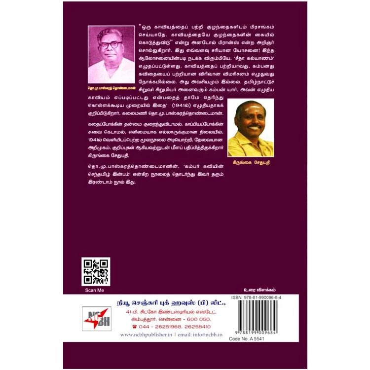 Details : Book Name : Seetha Kalyanam Regional Name : சீதா கல்யாணம் Author : கிருங்கை சேதுபதி Edition : 1st Edition ISBN : 978-81-990096-8-4 Category : Text Explanation Binding : Paper Binding Language : Tamil Publishing Year : 2025 Pages : 88 Code No : A5541 சீதா கல்யாணம் : “ஒரு காவியத்தைப் பற்றி குழந்தைகளிடம் பிரசங்கம் செய்யாதே, காவியத்தையே குழந்தைகளின் கையில் கொடுத்துவிடு” என்று அனடோல் பிரான்ஸ் என்ற அறிஞர் சொல்லுகிறார். இது எவ்வளவு சரியான யோசனை! இந்த ஆலோசனையின்படி நடக்க விரும்பியே, ‘சீதா கல்யாணம் எழுதப்பட்டுள்ளது. காவியத்தைப் பற்றியாவது, கம்பனது கவிதையைப் பற்றியான விரிவான விமரிசனம் எழுதுவது நோக்கமில்லை. அது அவசியமும் இல்லை. தமிழ்நாட்டுச் தொ.மு.பாஸ்கரத் தொண்டைமான் சிறுவர் சிறுமியர் அனைவரும் கம்பன் யார், அவன் எழுதிய காவியம் எப்படிப்பட்டது என்பதைத் தாமே தெரிந்து கொள்ளக்கூடிய முறையில் இதை’ (1941ல்) எழுதியதாகக் குறிப்பிடுகிறார். கலைமணி தொ.மு.பாஸ்கரத்தொண்டைமான். கதைப்போக்கின் தன்மை குறைந்துவிடாமல், காப்பியப்போக்கின் சுவை கெடாமல், எளிமையாக எல்லாருக்குமான நிலையில், 1941ல் வெளியிடப்பெற்ற மூலநூலை அடியொற்றி, தேவையான அறிமுகம், குறிப்புகள் ஆகியவற்றுடன் மீளப் பதிப்பித்திருக்கிறார் கிருங்கை சேதுபதி. தொ.மு.பாஸ்கரத்தொண்டைமானின். ‘கம்பர் கவியின் செந்தமிழ் இன்பம்’ என்கிற நூலைத் தொடர்ந்து இவர் தரும் இரண்டாம் நூல் இது. |