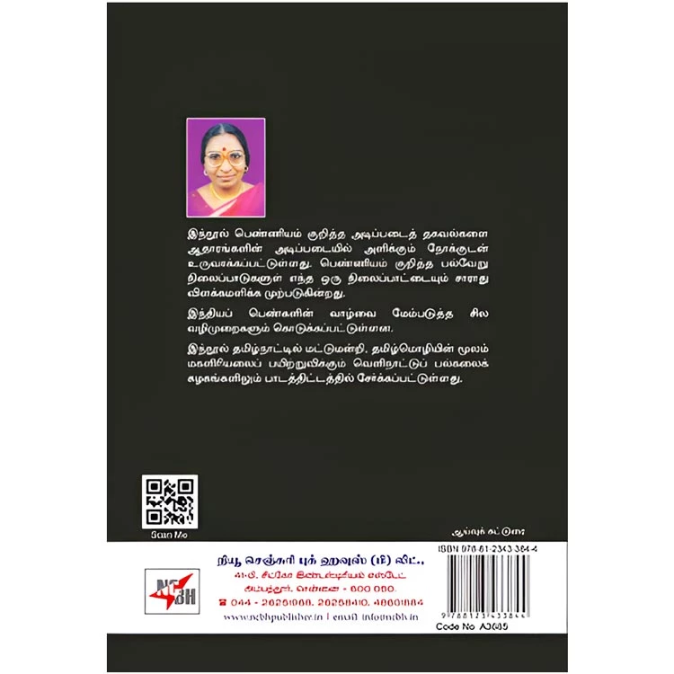 Details : Category : Articles ISBN : 9788123433844 Author : S. Muthuchithambaram Weight : 100.00 gm Binding : Paper Back Language : Tamil Publishing Year : 2005 Code no : A3685 Pages : 208 பெண்ணியம் தோற்றமும் வளர்ச்சியும் : இந்நூல் பெண்ணியம் குறித்த அடிப்படைத் தகவல்களை ஆதாரங்களின் அடிப்படையில் அளிக்கும் நோக்குடன் உருவாக்கப்பட்டுள்ளது. பெண்ணியம் குறித்த பல்வேறு நிலைப்பாடுகளுள் எந்த ஒரு நிலைப்பாட்டையும் சாராது விளக்கமளிக்க முற்படுகின்றது. இந்தியப் பெண்களின் வாழ்வை மேம்படுத்த சில வழிமுறைகளும் கொடுக்கப்பட்டுள்ளன. இந்நூல் தமிழ்நாட்டில் மட்டுமன்றி, தமிழ்மொழியின் மூலம் மகளிரியலைப் பயிற்றுவிக்கும் வெளிநாட்டுப் பல்கலைக் கழகங்களிலும் பாடத்திட்டத்தில் சேர்க்கப்பட்டுள்ளது. |
