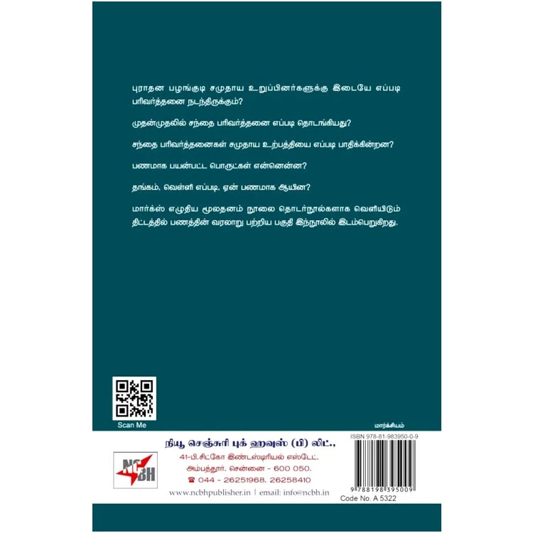 Details : Edition : 1 ISBN : 9788198395009 Category : Marxium Author : Karl Marx Weight : 100.00gm Binding : Paper Back Language : Tamil Publishing Year : 2024 Pages : 44 Code no : A5322 பணத்தால் ஆளப்படும் இந்த உலகம் ஒரு மாய உலகம். பொருட்கள் உயிர் பெறுகின்றன, பேசுகின்றன, மனிதர்களை ஆட்டிப் படைக்கின்றன. பொருட்களின் ஆட்சியில் இருந்து விடுபட முடியாமல் மனிதர்கள் அலைக்கழிக்கப்படுகிறார்கள். மாய உலகின் திரையை விலக்கி உண்மை மனித உறவுகளைப் புரிந்துகொள்ள இயலுமா? அதைப் புரிந்து கொண்டால் இந்த மயக்கத்திலிருந்து விடுபட முடியுமா? இவ்வுலகம் தோற்றுவிக்கும் மயக்கங்களின் ஊடாக நம்மை அழைத்துச்செல்கிறார், மார்க்ஸ். மார்க்ஸ் எழுதிய மூலதனம் நூலை தொடர்நூல்களாக வெளியிடும் திட்டத்தில் பணத்தால் இயங்கும் உலகத்தின் மாயத்தன்மை பற்றிய பகுதி இந்நூலில் இடம்பெறுகிறது. |