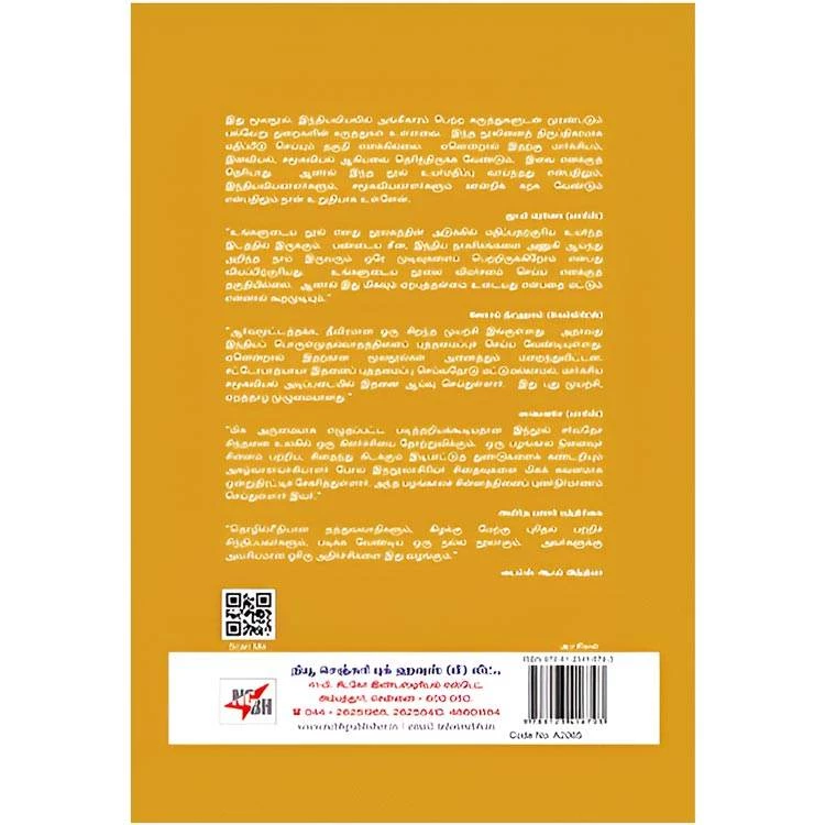 Details : Edition : 04 ISBN : 9788123416793 Author : Deviprasad Chattopadhyaya Translator : S.Thothathri Weight : 500.00 gm Binding : Hard Bound Language : Tamil Publishing Year : 2023 Pages : 948 Code no : A2065 உலகாயதம் : உலகாயதம் பண்டைக்கால இந்தியப் பொருள்முதல்வாதம் பற்றிய ஆய்வு. இது மூலநூல், இந்தியவியலில் அங்கீகாரம் பெற்ற கருத்துகளுடன் முரண்படும் பல்வேறு துறைகளின் கருத்துகள் உள்ளவை. இந்த நூலினைத் திருப்திகரமாக மதிப்பீடு செய்யும் தகுதி எனக்கில்லை. ஏனென்றால் இதற்கு மார்க்சியம், இனவியல், சமூகவியல் ஆகியவை தெரிந்திருக்க வேண்டும். இவை எனக்குத் தெரியாது. ஆனால் இந்த நூல் உயர்மதிப்பு வாய்த்தது என்பதிலும், இந்தியவியலாளர்களும், சமூகவியலாளர்களும் ஊன்றிக் கற்க வேண்டும் என்பதிலும் நான் உறுதியாக உள்ளேன். |