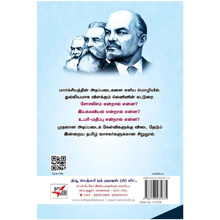 Details : Book Name: Leninidam Karpom Regional Name: லெனினிடம் கற்போம்!! Author: தொகுப்பு மா.சிவகுமார் Edition: 1st Edition ISBN: 978-81-984356-7-5 Category: Markisiyam Binding: Paper Binding Language: Tamil Publishing Year: 2025 Pages: 16 Code No: A5339 மார்க்சியத்தின் அடிப்படைகளை எளிய மொழியில், துல்லியமாக விளக்கும் லெனினின் கட்டுரை. சோசலிசம் என்றால் என்ன? இயக்கவியல் என்றால் என்ன? உபரி-மதிப்பு என்றால் என்ன? முதலான அடிப்படைக் கேள்விகளுக்கு விடை தேடும் இன்றைய தமிழ் வாசகர்களுக்கான சிறுநூல். |