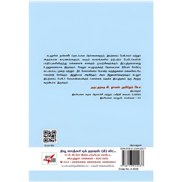 Details ISBN : 9788123442037 Author : Loyola Institute of socail science Weight : 100.00 gm Binding : Paper Back Language : Tamil Publishing Year : Code no : A4556 கடலூர் மாவட்டம் : கடலூரின் தண்ணீர் தொடர்பான பிரச்சனைகளும், இயற்கைப் பேரிடர்கள் மற்றும் அதற்கான காரணங்களும், வரும் காலங்களில் ஏற்படும் பேரிடர்களின் பாதிப்புகளிலிருந்து மக்களைக் காக்கும் முயற்சிகளுக்கும் இப்புத்தகமானது உறுதுணையாக இருக்கும். மேலும் கடலூருக்குத் தேவையான நீரியல் சேமிப்பு கட்டமைப்பு முறை மற்றும் நீர் மேலாண்மை போன்ற கருத்துகளை மக்களிடையே கொண்டு சேர்க்கும். இறுதியாக அரசிற்கும் அரசு நிறுவனங்களுக்கும் கடலூர் இயற்கைப் பேரிடர் மேலாண்மைக்குக் கொள்கை வகுக்க இப்புத்தகம் ஒரு சிறந்த கருவியாக இருக்கும். அருட்தந்தை கி. தாமஸ் அமிர்தம் சே.ச இயக்குநர் இலயோலா சமூக ஆராய்ச்சி மற்றும் பயிற்சி மையம் (Lisstar) இலயோலா கல்லூரி, சென்னை-34 |