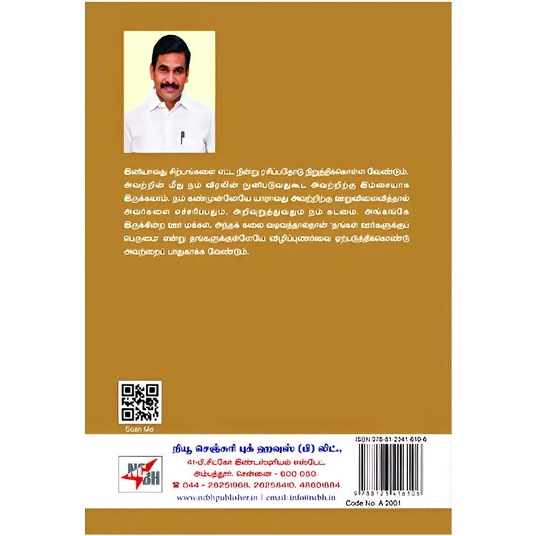 Details : Edition : 2 Category : Art ISBN : 9788123416106 Author : V.Iraianbu Weight : 100gm Binding : Paper Back Language : Tamil Publishing Year : 2024 Pages : 16 Code no : A2001 சிற்பங்களைச் சிதைக்கலாமா? : இனியாவது சிற்பங்களை எட்ட நின்று ரசிப்பதோடு நிறுத்திக்கொள்ள வேண்டும். அவற்றின் மீது நம் விரலின் நுனிபடுவதுகூட அவற்றிற்கு இம்சையாக இருக்கலாம். நம் கண்முன்னேயே யாராவது அவற்றிற்கு ஊறுவிளைவித்தால் அவர்களை எச்சரிப்பதும், அறிவுறுத்துவதும் நம் கடமை. அங்கங்கே இருக்கின்ற ஊர் மக்கள். அந்தக் கலை வடிவத்தால்தான் “தங்கள் ஊர்களுக்குப் பெருமை’ என்று தங்களுக்குள்ளேயே விழிப்புணர்வை ஏற்படுத்திக்கொண்டு அவற்றைப் பாதுகாக்க வேண்டும். |