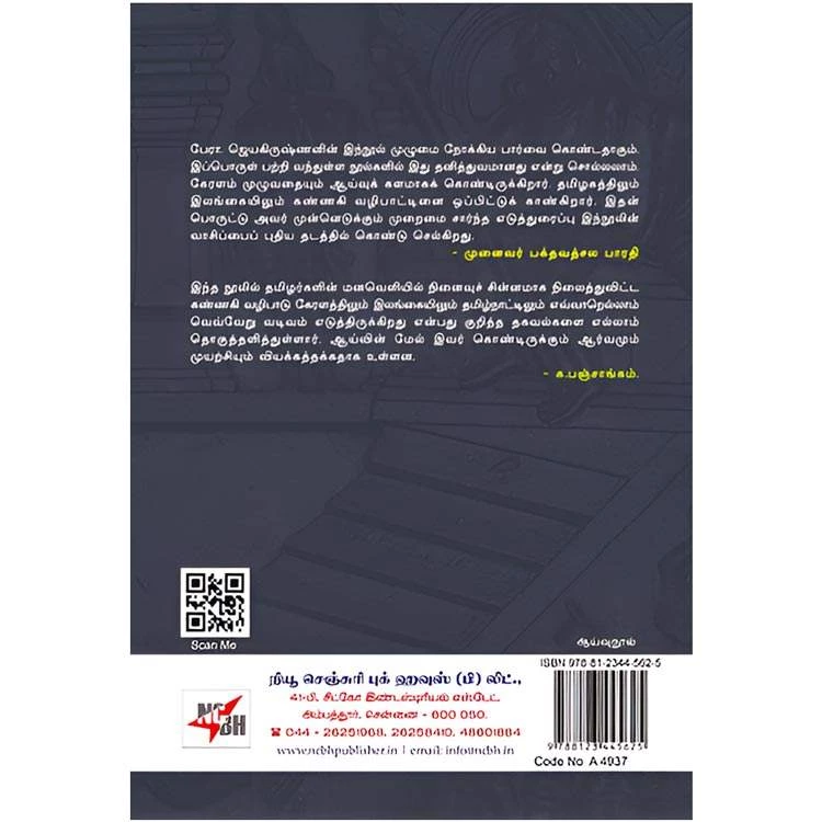 Details : Edition : 1 Category : Research Texts ISBN : 9788123445625 Author : P. JeyaKrishnan Weight : 100.00 gm Binding : Paper Back Language : Tamil Publishing Year : 2023 Pages : 166 Code no : A4937 சிலப்பதிகாரமும் கண்ணகி வழிபாடும் : பேரா. ஜெயகிருஷ்ணனின் இந்நூல் முழுமை நோக்கிய பார்வை கொண்டதாகும். இப்பொருள் பற்றி வந்துள்ள நூல்களில் இது தனித்துவமானது என்று சொல்லலாம். கேரளம் முழுவதையும் ஆய்வுக் களமாகக் கொண்டிருக்கிறார். தமிழகத்திலும் இலங்கையிலும் கண்ணகி வழிபாட்டினை ஒப்பிட்டுக் காண்கிறார். இதன் பொருட்டு அவர் முன்னெடுக்கும் முறைமை சார்ந்த எடுத்துரைப்பு இந்நூலின் வாசிப்பைப் புதிய தடத்தில் கொண்டு செல்கிறது. முனைவர் பக்தவத்சல பாரதி இந்த நூலில் தமிழர்களின் மனவெளியில் நினைவுச் சின்னமாக நிலைத்துவிட்ட கண்ணகி வழிபாடு கேரளத்திலும் இலங்கையிலும் தமிழ்நாட்டிலும் எவ்வாறெல்லாம் வெவ்வேறு வடிவம் எடுத்திருக்கிறது என்பது குறித்த தகவல்களை எல்லாம் தொகுத்தளித்துள்ளார். ஆய்வின் மேல் இவர் கொண்டிருக்கும் ஆர்வமும் முயற்சியும் வியக்கத்தக்கதாக உள்ளன. க.பஞ்சாங்கம். |