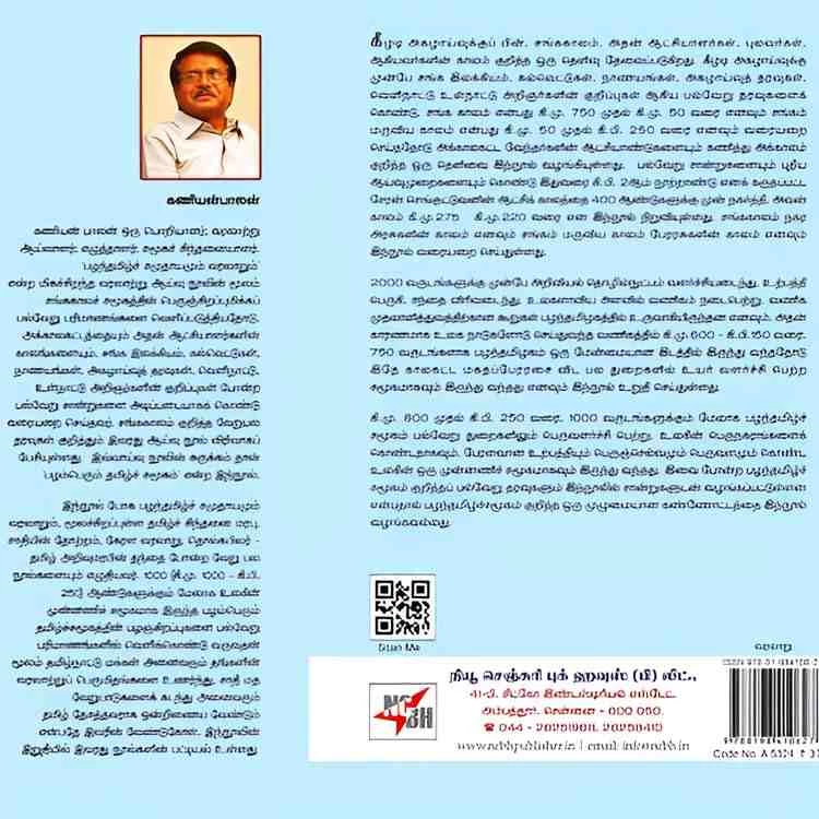 Details : Edition : 1 ISBN : 9788198410627 Category : History Author : K.N. Balan (Kanniyanbalan) Weight : 250.00gm Binding : Paper Back Language : Tamil Publishing Year : 2024 Pages : 248 Code no : A5324 பழம்பெரும் தமிழ்ச் சமூகம்-கணியன்பாலன் : கணியன் பாலன் ஒரு பொறியாளர்; வரலாற்று ஆய்வாளர்; எழுத்தாளர்; சமூகச் சிந்தனையாளர். பழந்தமிழ்ச் சமுதாயமும் வரலாறும்’ என்ற மிகச்சிறந்த வரலாற்று ஆய்வு நூலின் மூலம் சங்ககாலச் சமூகத்தின் பெருஞ்சிறப்புமிக்கப் பல்வேறு பரிமாணங்களை வெளிப்படுத்தியதோடு, அக்காலகட்டத்தையும் அதன் ஆட்சியாளர்களின் காலங்களையும், சங்க இலக்கியம், கல்வெட்டுகள், நாணயங்கள், அகழாய்வுத் தரவுகள், வெளிநாட்டு, உள்நாட்டு அறிஞர்களின் குறிப்புகள் போன்ற பல்வேறு சான்றுகளை அடிப்படையாகக் கொண்டு வரையறை செய்தவர். சங்ககாலம் குறித்த வேறுபல தரவுகள் குறித்தும் இவரது ஆய்வு நூல் விரிவாகப் பேசியுள்ளது. இவ்வாய்வு நூலின் சுருக்கம் தான் ‘பழம்பெரும் தமிழ்ச் சமூகம்’ என்ற இந்நூல். இந்நூல் போக பழந்தமிழ்ச் சமுதாயமும் வரலாறும், மூலச்சிறப்புள்ள தமிழ்ச் சிந்தனை மரபு, சாதியின் தோற்றம், கேரள வரலாறு, தொல்கபிலர் – தமிழ் அறிவுமரபின் தந்தை போன்ற வேறு பல நூல்களையும் எழுதியவர். 1000 (கி.மு. 1000 – கி.பி. 250) ஆண்டுகளுக்கும் மேலாக உலகின் முன்னணிச் சமூகமாக இருந்த பழம்பெரும் தமிழ்ச்சமூகத்தின் பழஞ்சிறப்புகளை பல்வேறு பரிமாணங்களில் வெளிக்கொண்டு வருவதன் மூலம் தமிழ்நாட்டு மக்கள் அனைவரும் தங்களின் வரலாற்றுப் பெருமிதங்களை உணர்ந்து, சாதி மத வேறுபாடுகளைக் கடந்து அனைவரும் தமிழ் தேசத்தவராக ஒன்றிணைய வேண்டும் என்பதே இவரின் வேண்டுகோள். இந்நூலின் இறுதியில் இவரது நூல்களின் பட்டியல் உள்ளது. கீழடி அகழாய்வுக்குப் பின், சங்ககாலம். அதன் ஆட்சியாளர்கள். புலவர்கள். ஆகியவர்களின் காலம் குறித்த ஒரு தெளிவு தேவைப்படுகிறது. கீழடி அகழாய்வுக்கு முன்பே சங்க இலக்கியம், கல்வெட்டுகள், நாணயங்கள். அகழாய்வுத் தரவுகள். வெளிநாட்டு உள்நாட்டு அறிஞர்களின் குறிப்புகள் ஆகிய பல்வேறு தரவுகளைக் கொண்டு, சங்க காலம் என்பது கி.மு. 750 முதல் கி.மு. 50 வரை எனவும் சங்கம் மருவிய காலம் என்பது கி.மு. 50 முதல் கி.பி. 250 வரை எனவும் வரையறை செய்ததோடு அக்காலகட்ட வேந்தர்களின் ஆட்சியாண்டுகளையும் கணித்து அக்காலம் குறித்த ஒரு தெளிவை இந்நூல் வழங்கியுள்ளது. பல்வேறு சான்றுகளையும் புதிய ஆய்வுமுறைகளையும் கொண்டு இதுவரை கி.பி. 2ஆம் நூற்றாண்டு எனக் கருதப்பட்ட சேரன் செங்குட்டுவனின் ஆட்சிக் காலத்தை 400 ஆண்டுகளுக்கு முன் நகர்த்தி, அவன் காலம் கி.மு.275 கி.மு.220 வரை என இந்நூல் நிறுவியுள்ளது. சங்ககாலம் நகர அரசுகளின் காலம் எனவும் சங்கம் மருவிய காலம் பேரரசுகளின் காலம் எனவும் இந்நூல் வரையறை செய்துள்ளது. 2000 வருடங்களுக்கு முன்பே அறிவியல் தொழில்