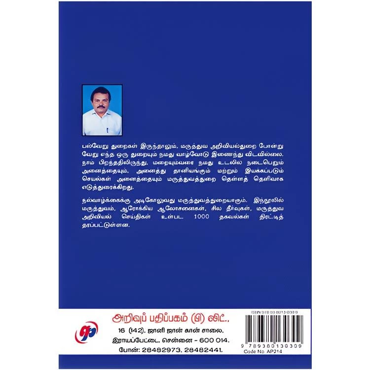 Details : Category : General Knowledge ISBN : 9789380130309 Author : S. Ananthakumar Weight : 100.00 gm Binding : Paper Back Language : Tamil Publishing Year : 2009 pages : 235 Code no : AP214 மருத்துவ உலகம் : பல்வேறு துறைகள் இருந்தாலும், மருத்துவ அறிவியல்துறை போன்று வேறு எந்த ஒரு துறையும் நமது வாழ்வோடு இணைந்து விடவில்லை. நாம் பிறந்ததிலிருந்து, மறையும்வரை நமது உடலில் நடைபெறும் அனைத்தையும், அனைத்து தானியங்கும் மற்றும் இயக்கப்படும் செயல்கள் அனைத்தையும் மருத்துவத்துறை தெள்ளத் தெளிவாக எடுத்துரைக்கிறது. நல்வாழ்க்கைக்கு அடிகோலுவது மருத்துவத்துறையாகும். இந்நூலில் மருத்துவம், ஆரோக்கிய ஆலோசனைகள், சில தீர்வுகள், மருத்துவ அறிவியல் செய்திகள் உள்பட 1000 தகவல்கள் திரட்டித் தரப்பட்டுள்ளன. |