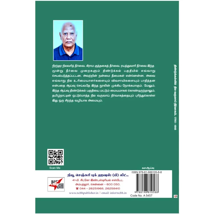 Details : Author : முனைவர் R. பாண்டியன் Edition : 1st Edition ISBN : 978-81-988105-8-8 Category : Research Binding : Paper Binding Language : Tamil Publishing Year : 2025 Pages : 124 Code No : A5457 திண்டுக்கல்லில் நில வருவாய் நிர்வாகம் : நிரந்தர நிலவரித் தீர்வை. கிராம குத்தகைத் தீர்வை, ரயத்துவாரி தீர்வை இந்த மூன்று தீர்வை முறைகளும் திண்டுக்கல் பகுதியில் எவ்வாறு செயல்படுத்தப்பட்டன. அவற்றின் நன்மை தீமைகள் என்னென்ன. அவை எவ்வாறு நில உரிமையாளர்களையும் விவசாயிகளையும் பாதித்தன என்பதை ஆய்வு செய்வதே இந்த நூலின் முக்கிய நோக்கமாகும். மேலும், இந்த ஆய்வு திண்டுக்கல் பகுதியை மட்டும் மையமாகக் கொண்டிருந்தாலும், தமிழ்நாட்டின் ஒட்டுமொத்த நில வருவாய் நிர்வாகத்தையும் புரிந்துகொள்ள இது ஒரு சிறந்த வழியாக அமையும். |