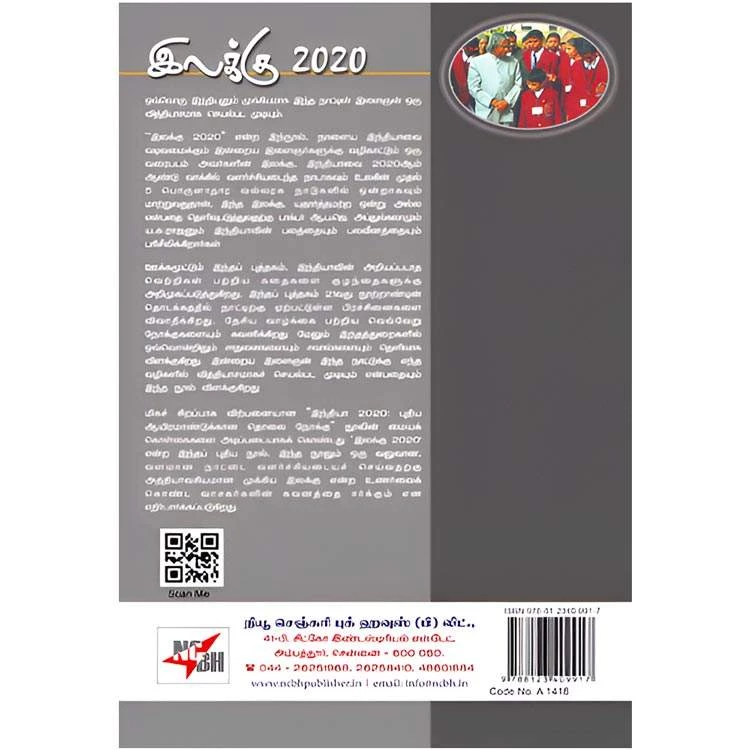 Details : ISBN : 9788123409917 Author : A.P.J. Abdul Kalam Weight : 100.00gm Ilakku 2020 Binding : Paper back Language : Tamil Publishing Year : 2005 Code no :A1418 இலக்கு 2020 : ஒவ்வொரு இந்தியனும் முக்கியமாக இந்த நாட்டின் இளைஞன் ஒரு வித்தியாசமாக செயல்பட முடியும். “இலக்கு 2020” என்ற இந்நூல், நாளைய இந்தியாவை வடிவமைக்கும் இன்றைய இளைஞர்களுக்கு வழிகாட்டும் ஒரு வரைபடம் அவர்களின் இலக்கு, இந்தியாவை 2020ஆம் ஆண்டு வாக்கில் வளர்ச்சியடைந்த நாடாகவும் உலகின் முதல் 5 பொருளாதார வல்லரசு நாடுகளில் ஒன்றாகவும் மாற்றுவதுதான், இந்த இலக்கு, யதார்த்தமற்ற ஒன்று அல்ல என்பதை தெளிவுபடுத்துவதற்கு டாக்டர் ஆ.ப.ஜெ. அப்துல்கலாமும் ய.சு.ராஜனும் இந்தியாவின் பலத்தையும் பலவீனத்தையும் பரிசீலிக்கிறார்கள் ஊக்கமூட்டும் இந்தப் புத்தகம், இந்தியாவின் அறியப்படாத வெற்றிகள் பற்றிய கதைகளை குழந்தைகளுக்கு அறிமுகப்படுத்துகிறது. இந்தப் புத்தகம் 21வது நூற்றாண்டின் தொடக்கத்தில் நாட்டிற்கு ஏற்பட்டுள்ள பிரச்சினைகளை விவாதிக்கிறது. தேசிய வாழ்க்கை பற்றிய வெவ்வேறு நோக்குகளையும் கவனிக்கிறது மேலும் இந்தத்துறைகளில் ஒவ்வொன்றிலும் சாதனைகளையும் சவால்களையும் தெளிவாக விளக்குகிறது. இன்றைய இளைஞன் இந்த நாட்டுக்கு எந்த வழிகளில் வித்தியாசமாகச் செயல்பட முடியும் என்பதையும் இந்த நூல் விளக்குகிறது மிகச் சிறப்பாக விற்பனையான “இந்தியா 2020: புதிய ஆயிரமாண்டுக்கான தொலை நோக்கு” நூலின் மையக் கொள்கைகளை அடிப்படையாகக் கொண்டது ‘இலக்கு 2020’ என்ற இந்தப் புதிய நூல். இந்த நூலும் ஒரு வலுவான, வளமான நாட்டை வளர்ச்சியடையச் செய்வதற்கு அத்தியாவசியமான முக்கிய இலக்கு என்ற உணர்வைக் கொண்ட வாசகர்களின் கவனத்தை ஈர்க்கும் என எதிர்பார்க்கப்படுகிறது. |