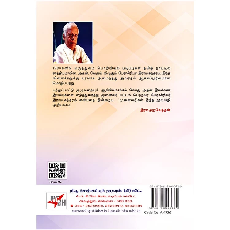 Details : ISBN : 9788123443720 Author : Rama. Sundaram Weight : 100.00 gm Binding : Paper Back Language : Tamil Publishing Year : 2022 Code no : A4726 அறிவியல் தமிழ்த் தாத்தா : 1990களில் மருத்துவம் பொறியியல் படிப்புகள் தமிழ் நாட்டில் சாத்தியமாயின. அதன். வேரும் விழுதும் பேராசிரியர் இராம.சுந்தரம். இந்த விளைச்சலுக்கு உரமாக அமைந்தது அவர்தம் ஆக்கப்பூர்வமான மொழிப்பற்று. பத்துப்பாட்டு முழுவதையும் ஆங்கிலமாக்கம் செய்து அதன் இலக்கண இயல்புகளை எடுத்துரைத்து முனைவர் பட்டம் பெற்றவர் பேராசிரியர் இராம.சுந்தரம் என்பதை இன்றைய ‘முனைவர்’கள் இந்த நூல்வழி அறியலாம். |