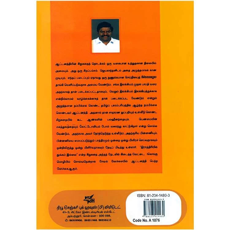 Details : Category : Short Stories ISBN : 9788123414805 Author : Aattanathi Weight : 100.00 gm Binding : Paper Back Language : Tamil Publishing Year : 2009 Pages : 120 Code no : A1876 அவளா இவள் : ஆட்டனத்தியின் சிறுகதைத் தொடக்கம் ஒரு வகையான உந்துதலான நிலையில் அமையும். அது ஒரு சிறப்பம்சம். ஜெயகாந்தனிடம் அதை அழுத்தமாகக் காண முடியும். எந்தப் படைப்பும் ஏதாவது ஒரு நுணுக்கமான செய்தியைத் Messeger தாங்கி வெளிப்படுவதாக அமைய வேண்டும். சங்க இலக்கியம் முதல் பாரதி வளர அதற்காகத் தான் படைக்கப்பட்டதாகவும், வெறும் இயக்கியம் இலக்கியத்துக்காக என்றில்லாமல் வாழ்க்கைக்காகத் தான் படைக்கப்பட வேண்டும் என்றும் அழுத்தமான நம்பிக்கை கொண்ட தமிழ்ப் பாரம்பரியத்தில் ஆழ்த்த நம்பிக்கை கொண்டவர் ஆட்டனத்தி, அதனால் தான் சாதாரண துப்பறியும் உள்ளீடு கொண்ட சிறுகதையில் கூட ஆண்களின் பலஹீனத்தையும், பெண்மையின் மகத்துவத்தையும் கோட்டோவியம் போல் வரைந்து காட்டுகிறார் என்று சொல்ல வேண்டும். அதற்காக அவர் தேர்ந்தெடுத்த உள்ளீடும், அதற்குரிய பின்னணியும், பின்னணியை மையப்படுத்தும் பாத்திரமும் ஒன்றை ஒன்று மிளிரச் செய்வதாகவும் ஒன்றிலிருந்து ஒன்று மிளிர்வதாகவும் தேடிப் பிடித்து உள்ளார். ‘இராத்திரியில் தூக்கம் இல்லை’ என்ற சிறுகதை அந்தத் தேடலில் கிடைத்த வேட்டை (கொங்கு மொழியில் சொல்வதென்றால் சேவல் கோச்சையில் ஆட்டனத்தி பெற்ற கோச்சை ஆகும். |