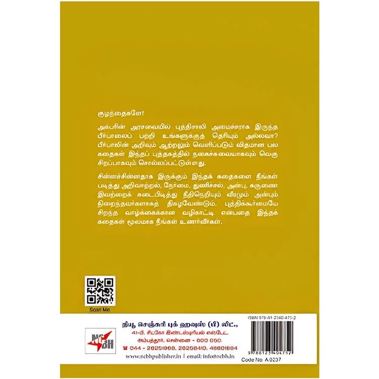 Details : Category : Children Stories ISBN : 9788123404752 Author : Mullai Muthaiah Weight : 100.00 gm Binding : Paper Back Language : Tamil Pages : 164 Publishing Year : 1986 Code no : A0237 |