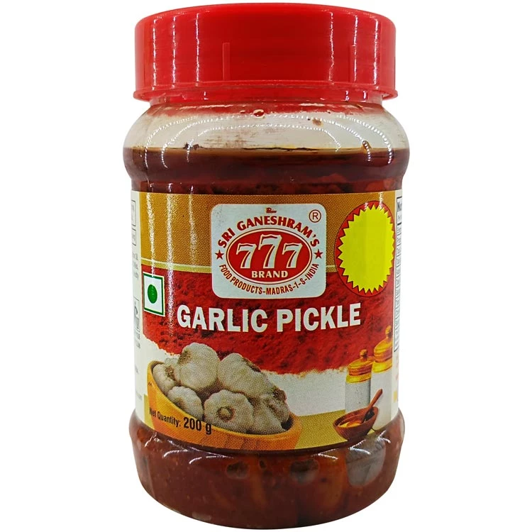 An Indian meal is incomplete without a pickle. We at 777 foods offer you this pickle with a perfect blend of preserved vegetables with select spices seasoned in a traditional method with a dose of gingelly oil to give 5% that aroma, taste and 0% wholesomeness. Ingredients : Garlic Pieces, lodized Salt, Ginger, Chilli Powder, Rice Bran Oil, Jaggery Powder, Tamarind, Mustard, Fenugreek Powder, Round Chillies Compounded Asafoetida Powder, Curry Leaves, Gingelly Oil & Acidity Regulators (INS 330 & INS 260). CONTAINS PERMITTED CLASS II PRESERVATIVE (INS 211). |