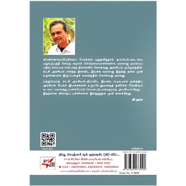 Details : ISBN : 9789388973090 Author : raj gauthaman Weight : 100.00 gm Binding : Paper Back Language : Tamil Publishing Year : 2018 Code no : A4095 தலித்திய அரசியல் : விமரிசன/சுயவிமரிசனப் போக்கை மறுதலித்தால் ‘தம்பியர்படை’யை மறுஉற்பத்தி செய்த சமூகக் கொடுமையாளர்களாக வரலாறு நம்மைப் பதிவு செய்யும் என்பதை நினைவில் கொள்வது அவசியம். தமிழகத்தின் கட்சி அரசியல் சார்ந்த திராவிட இயக்க வரலாறு இதற்கு நல்ல முன் உதாரணமாக இருப்பதைக் கவனத்தில் கொள்வது நல்லது. மற்றுமொரு ‘கட்சி அரசியல்-திராவிட இயக்க வடிவமாக தலித்திய அரசியல் பேசும் இயக்கங்கள் உருப்பெறுவதைத் தவிர்க்க வேண்டிய கடமை, வரலாற்று உணர்வோடு செயல்படுபவர்களுக்கு அவசியமாகிறது. இதற்கான விவாதப் புள்ளிகளை இக்குறுநூல் முன் வைக்கிறது. வீ.அரசு |