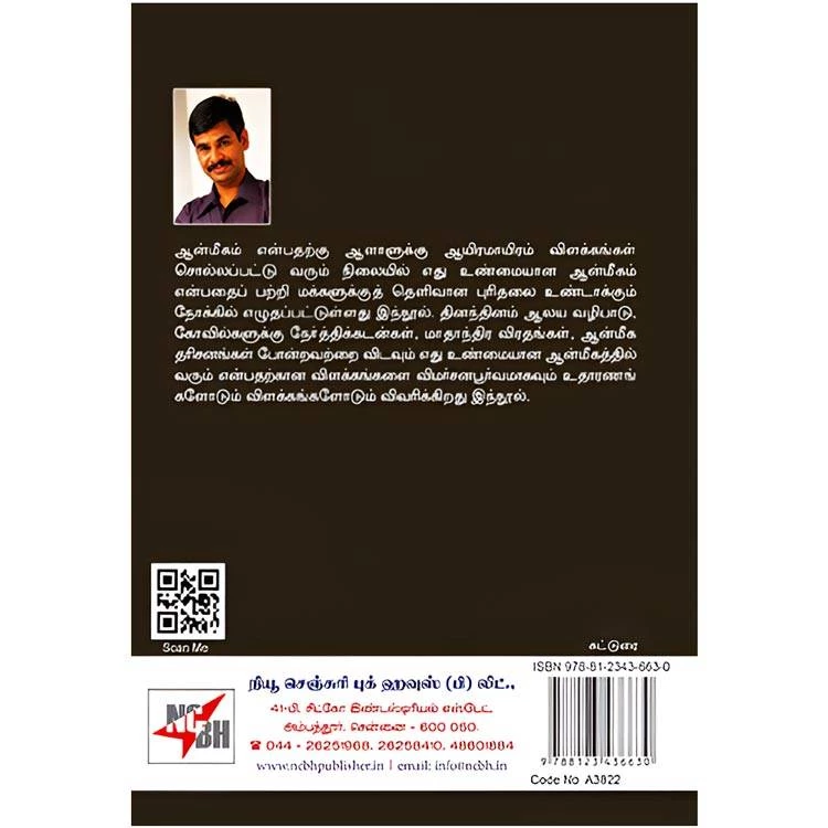 Details : ISBN : 9788123436630 Author : V.iraianbu Weight : 100.00gm Binding : paper back Language : Tamil Publishing Year : 2020 Code No : A3822 எது ஆன்மீகம் : ஆன்மீகம் என்பதற்கு ஆளாளுக்கு ஆயிரமாயிரம் விளக்கங்கள் சொல்லப்பட்டு வரும் நிலையில் எது உண்மையான ஆன்மீகம் என்பதைப் பற்றி மக்களுக்குத் தெளிவான புரிதலை உண்டாக்கும் நோக்கில் எழுதப்பட்டுள்ளது இந்நூல். தினந்தினம் ஆலய வழிபாடு, கோவில்களுக்கு நேர்த்திக்கடன்கள், மாதாந்திர விரதங்கள், ஆன்மீக தரிசனங்கள் போன்றவற்றை விடவும் எது உண்மையான ஆன்மீகத்தில் வரும் என்பதற்கான விளக்கங்களை விமர்சனபூர்வமாகவும் உதாரணங் களோடும் விளக்கங்களோடும் விவரிக்கிறது இந்நூல். |