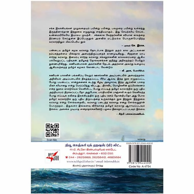 Details : ISBN : 9788123444000 Author : K.N. Balan (Kaniyanbalan) Weight : 300.00 gm Type : Bound Binding : Paper Back Language : Tamil Publishing Year : 2023 Code no : A4754 Pages : 556 பழந்தமிழ்ச் சமுதாயமும் வரலாறும் : சங்க இலக்கியங்கள் முழுவதையும் பயின்று பயின்று. பலமுறை பயின்று உள்ளத்து இருத்தினால்தான் இந்நூலை எழுதுவது சாத்தியமாகும்… இது செயற்கரிய செயல்… உண்மையிலேயே இமாலய முயற்சி. சங்ககால வேந்தர்களின் சரியான காலத்தை நிர்ணயம் செய்துள்ள இப்பெருநூல் அளவில் மட்டுமல்ல பொருள்பொதிந்த வரலாற்றிலும் மிகப்பெரிய நூல் – புலவர் செ. இராசு. பண்டைய தமிழ்ச் சமூக வரலாறு தொடர்பாக இந்நூல் தரும் கால அட்டவணை நம்பகத்தன்மை மிக்கதாக அமைந்திருப்பதைக் காணமுடிகிறது. சிந்தனை மரபு சார்ந்த வரலாறு. இனமரபு சார்ந்த வரலாறு. சங்கநூல்களின் காலவரையறை ஆகிய பல்வேறுபட்ட பதிவுகள், தமிழகத் தொல்வளங்கள் குறித்து அறிவதற்குப் பெரிதும் துணைபுரிகிறது. கணியன்பாலன் அவர்களின் தேடல், அதற்கான அவரது உழைப்பு ஆகியவற்றைத் தமிழ்ச் சமூகம் கொண்டாட வேண்டும். – வீ. அரசு, பேராசிரியர். கணியன் பாலனின் பங்களிப்பு வெறும் ஊகங்களின் அடிப்படையில் அமைந்ததல்ல. அறிவியல் அடிப்படையில் நிகழ்த்தப்பட்ட சீரிய ஆய்வு. இந்த நூல் எழுதப்பட்ட போது பயன்பட்ட சான்றுகளைக் கடந்து கீழடி அகழாய்வு இந்த ஆய்வின் பாதை மிகச் சரியானது என்று மெய்ப்பித்து விட்டது. திராவிட மொழிகளின் ஒப்பிலக்கணம் என்ற நூலை கால்டுவெல் வெளியிட்ட போது எப்படித் தமிழர் வரலாற்றில் ஒரு புதிய அத்தியாயம் திறக்கப்பட்டதோ அதுபோல, பாரதியாரின் பாஞ்சாலி சபதம் வெளிவந்த போது எப்படிக் கவிதை இலக்கியத்தில் ஒரு புதிய களம் தோன்றியதோ அது போல தமிழர் வரலாற்றில் ஒரு புதிய திருப்பத்தை உருவாக்கும் நூல் இந்நூல், இந்நூலை வரலாறு என்று சொல்வதைவிட வரலாறு படைத்த வரலாறு என்று சொல்வதுதான் பொருத்தம்… இதுவரை இவ்வளவு விரிவாகத் தமிழர் வரலாறு ஆராயப்படவும் இல்லை. அசைக்க முடியாத சான்றாதாரங்களோடு பழமை நிவைநாட்டப் படவும் இல்லை. – சிற்பி பாலசுப்ரமணியம். |