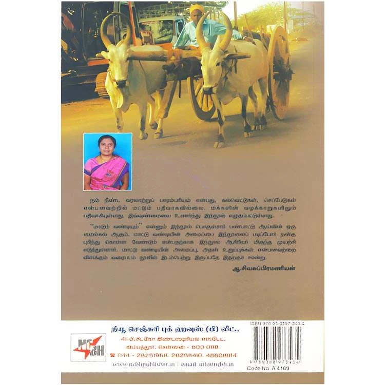 Details : ISBN : 9789388973434 Author : Dr. T. Jansi Paulraj Weight : 100.00 gm Binding : Paper Back Language : Tamil Publishing Year : Code no : A4169 Pages : 126 மாடும் வண்டியும் : நம் நீண்ட வரலாற்றுப் பாரம்பரியம் என்பது, கல்வெட்டுகள், செப்பேடுகள் என்பனவற்றில் மட்டும் பதிவாகவில்லை. மக்களின் வழக்காறுகளிலும் பதிவாகியுள்ளது. இவ்வுண்மையை உணர்ந்து இந்நூல் எழுதப்பட்டுள்ளது. “மாடும் வண்டியும்” என்னும் இந்நூல் பொருள்சார் பண்பாட்டு ஆய்வின் ஒரு மைல்கல் ஆகும். மாட்டு வண்டியின் அமைப்பை இந்நூலைப் படிப்போர் நன்கு புரிந்து கொள்ள வேண்டும் என்பதற்காக இந்நூல் ஆசிரியர் மிகுந்த முயற்சி எடுத்துள்ளார். மாட்டு வண்டியின் அமைப்பு, அதன் உறுப்புக்கள் என்பனவற்றை விளக்கும் வரைபடம் நூலில் இடம்பெற்று இருப்பதே இதற்குச் சான்று, ஆ.சிவசுப்பிரமணியன். |