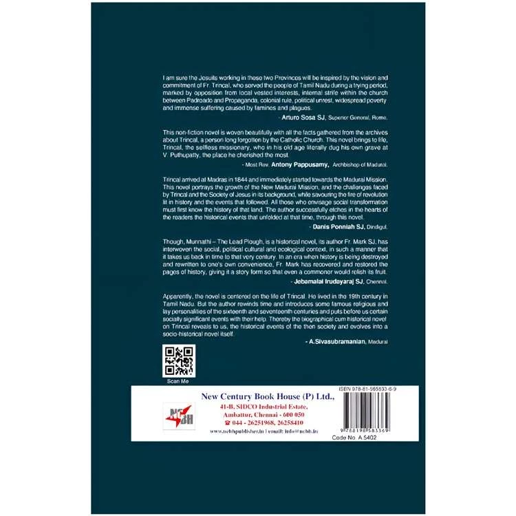 Details : Book Name : Munnathi The Lead Plough Regional Name: Munnathi The Lead Plough (A Socio – Historical Novel) Author : Mark – Pugazhandhi S.J Edition : 1st Edition ISBN : 978-81-985833-6-9 Category : NovelBinding : Hard Bound Language : English Publishing Year: 2025 Pages : 460 Code No : A5402 |