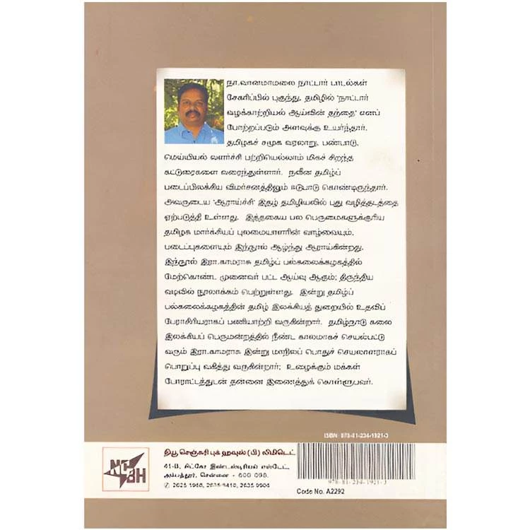 Details : ISBN : 9788123419213 Author : Dr. R. Kamarasu Weight : 100.00 gm Binding : Paper Back Language : Tamil Publishing Year : 2011 Code no : A2292 Pages : 376 பேராசிரியர் நா. வானமாமலை : நா.வானமாமலை நாட்டார் பாடல்கள் சேகரிப்பில் புகுந்து, தமிழில் ‘நாட்டார் வழக்காற்றியல் ஆய்வின் தந்தை’ எனப் போற்றப்படும் அளவுக்கு உயர்ந்தார். தமிழகச் சமூக வரலாறு, பண்பாடு,மெய்யியல் வளர்ச்சி பற்றியெல்லாம் மிகச் சிறந்த கட்டுரைகளை வரைந்துள்ளார். நவீன தமிழ்ப் படைப்பிலக்கிய விமர்சனத்திலும் ஈடுபாடு கொண்டிருந்தார். அவருடைய ‘ஆராய்ச்சி’ இதழ் தமிழியலில் புது வழித்தடத்தை ஏற்படுத்தி உள்ளது. இத்தகைய பல பெருமைகளுக்குரிய தமிழக மார்க்சியப் புலமையாளரின் வாழ்வையும், படைப்புகளையும் இந்நூல் ஆழ்ந்து ஆராய்கின்றது. இந்நூல் இரா.காமராசு தமிழ்ப் பல்கலைக்கழகத்தில் மேற்கொண்ட முனைவர் பட்ட ஆய்வு ஆகும்; திருந்திய வடிவில் நூலாக்கம் பெற்றுள்ளது. இன்று தமிழ்ப் பல்கலைக்கழகத்தின் தமிழ் இலக்கியத் துறையில் உதவிப் பேராசிரியராகப் பணியாற்றி வருகின்றார். தமிழ்நாடு கலை இலக்கியப் பெருமன்றத்தில் நீண்ட காலமாகச் செயல்பட்டு வரும் இரா.காமராசு இன்று மாநிலப் பொதுச் செயலாளராகப் பொறுப்பு வகித்து வருகின்றார்; உழைக்கும் மக்கள் போராட்டத்துடன் தன்னை இணைத்துக் கொள்ளுபவர். |