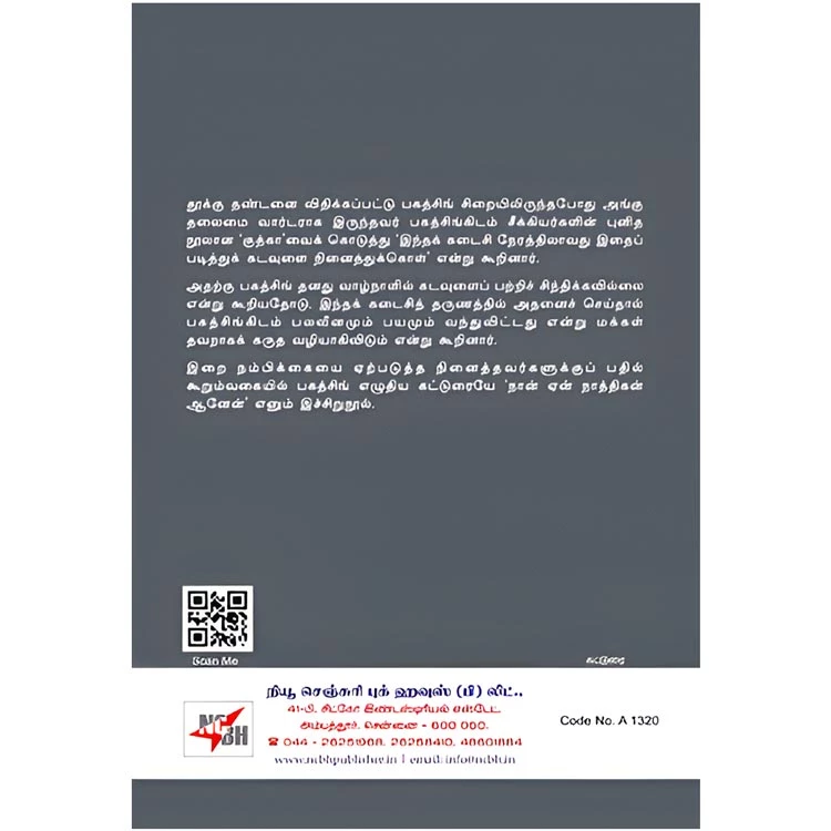 Details : Category : Essay Author : Bhagat Singh Weight : 100.00 gm Binding : Paper Back Language : Tamil Publishing Year : 2022 Pages : 28 Code no : A1320 நான் ஏன் நாத்திகன் ஆனேன்? : தூக்கு தண்டனை விதிக்கப்பட்டு பகத்சிங் சிறையிலிருந்தபோது அங்கு தலைமை வார்டராக இருந்தவர் பகத்சிங்கிடம் சீக்கியர்களின் புனித நூலான ‘குத்கா’வைக் கொடுத்து ‘இந்தக் கடைசி நேரத்திலாவது இதைப் படித்துக் கடவுளை நினைத்துக்கொள்’ என்று கூறினார். அதற்கு பகத்சிங் தனது வாழ்நாளில் கடவுளைப் பற்றிச் சிந்திக்கவில்லை என்று கூறியதோடு, இந்தக் கடைசித் தருணத்தில் அதனைச் செய்தால் பகத்சிங்கிடம் பலவீனமும் பயமும் வந்துவிட்டது என்று மக்கள் தவறாகக் கருத வழியாகிவிடும் என்று கூறினார். இறை நம்பிக்கையை ஏற்படுத்த நினைத்தவர்களுக்குப் பதில் கூறும்வகையில் பகத்சிங் எழுதிய கட்டுரையே ‘நான் ஏன் நாத்திகன் ஆனேன்’ எனும் இச்சிறுநூல். |