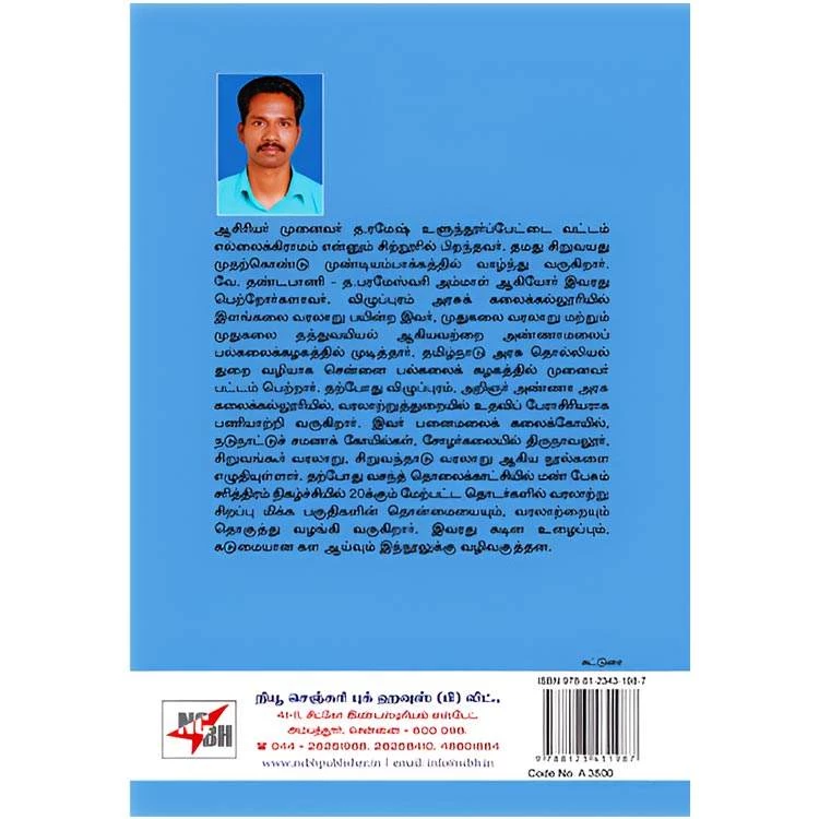 Details : Category : Essay ISBN : 9788123431987 Author : D. Ramesh Weight : 100.00 gm Binding : Paper Back Language : Tamil Publishing Year : 2020 Code no : A3500 Pages : 237 நடுநாட்டில் சமணம் : ஆசிரியர் முனைவர் த.ரமேஷ் உளுந்தூர்ப்பேட்டை வட்டம் எல்லைக்கிராமம் என்னும் சிற்றூரில் பிறந்தவர். தமது சிறுவயது முதற்கொண்டு முண்டியம்பாக்கத்தில் வாழ்ந்து வருகிறார். வே.தண்டபாணி – த.பரமேஸ்வரி அம்மாள் ஆகியோர் இவரது பெற்றோர்களாவர். விழுப்புரம் அரசு கலைக்கல்லூரியில் இளங்கலை வரலாறு பயின்ற இவர், முதுகலை வரலாறு மற்றும் முதுகலை தத்துவயியல் ஆகியவற்றை அண்ணாமலைப் பல்கலைக்கழகத்தில் முடித்தார். தமிழ்நாடு அரசு தொல்லியல் துறை வழியாக சென்னை பலகலைக் கழகத்தில் முனைவர் பட்டம் பெற்றார். தற்போது விழுப்புரம், அறிஞர் அண்ணா அரசு கலைக்கல்லூரியில், வரலாற்றுத்துறையில் உதவிப் பேராசிரியராக பணியாற்றி வருகிறார். இவர் பனைமலைக் கலைக்கோயில், நடுநாட்டுச் சமணக் கோயில்கள், சோழர்கலையில் திருநாவலூர், சிறுவங்கூர் வரலாறு, சிறுவந்தாடு வரலாறு ஆகிய நூல்களை எழுதியுள்ளார். தற்போது வசந்த் தொலைக்காட்சியில் மண் பேசும் சரித்திரம் நிகழ்ச்சியில் 20க்கும் மேற்பட்ட தொடர்களில் வரலாற்று சிறப்பு மிக்க பகுதிகளின் தொன்மையையும், வரலாற்றையும் தொகுத்து வழங்கி வருகிறார். இவரது கடின உழைப்பும், கடுமையான கள ஆய்வும் இந்நூலுக்கு வழிவகுத்தன. |
