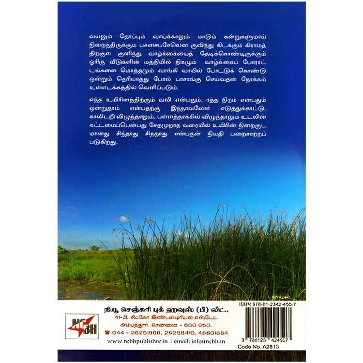 Details : Category : Novel ISBN : 9788123424507 Author : C.R. Ravindran Weight : 100.00 gm Binding : Paper Back Language : Tamil Publishing Year : 178 Pages : 178 Code no : A2813 ஓடைப்புல் : வயலும் தோப்பும் வாய்க்காலும் மாடும் கன்றுகளுமாய் நிறைந்திருக்கும் பச்சைபசேலென குவிந்து கிடக்கும் கிராமத் திற்குள் குனிந்து வாழ்க்கையைத் தேடிக்கொண்டிருக்கும் ஓரிரு வீடுகளின் மத்தியில் நிகழும் வாழ்க்கைப் போராட் டங்களை மொத்தமும் வாங்கி வாயில் போட்டுக் கொண்டு ஒன்றும் தெரியாதது போல் பாசாங்கு செய்வதன் நோக்கம் உள்ளடக்கத்தில் வெளிப்படும். எந்த உயிரினத்திற்கும் வலி என்பதும், ரத்த நிறம் என்பதும் ஒன்றுதாம் என்பதற்கு இந்நாவலோர் எடுத்துக்காட்டு. காலிடறி விழுந்தாலும், பள்ளத்தாக்கில் விழுந்தாலும் உடலின் கட்டமைப்பென்பது சேதமுறாத வரையில் உயிரின் திறைகுட மானது சிந்தாது சிதறாது என்பதன் நியதி பறைசாற்றப் படுகிறது. |