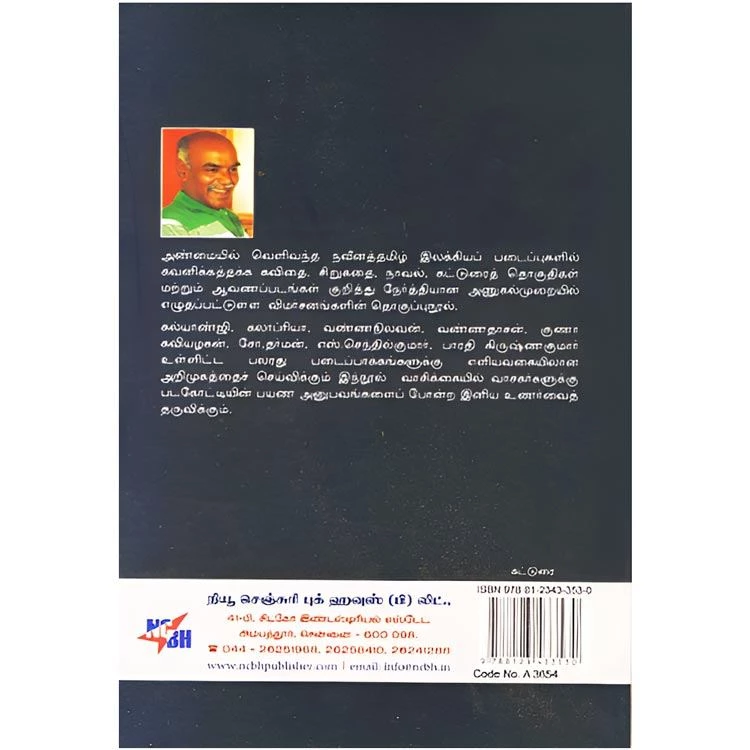 Details : ISBN : 9788123433530 Author : Paavannan Weight : 100.00 gm Binding : Paper Back Language : Tamil Publishing Year : 2017 Code no : A3654 Pages : 252 படகோட்டியின் பயணம் : அண்மையில் வெளிவந்த நவீனத்தமிழ் இலக்கியப் படைப்புகளில் சுவனிக்கத்தக்க கவிதை, சிறுகதை, நாவல், கட்டுரைத் தொகுதிகள் மற்றும் ஆவணப்படங்கள் குறித்து நேர்த்தியான அணுகல்முறையில் எழுதப்பட்டுள்ள விமர்சனங்களின் தொகுப்புநூல். கல்யாண்ஜி, கலாப்ரியா, வண்ணநிலவன், வண்ணதாசன். குணா கவியழகன், சோ,தர்மன், எஸ்.செந்தில்குமார், பாரதி கிருஷ்ணகுமார். உள்ளிட்ட பலாது படைப்பாக்கங்களுக்கு எளியவகையிலான அறிமுகத்தைச் செய்விக்கும் இந்நூல் வாசிக்கையில் வாசகர்களுக்கு படகோட்டியின் பயண அனுபவங்களைப் போன்ற இனிய உணர்வைத் தருவிக்கும். |