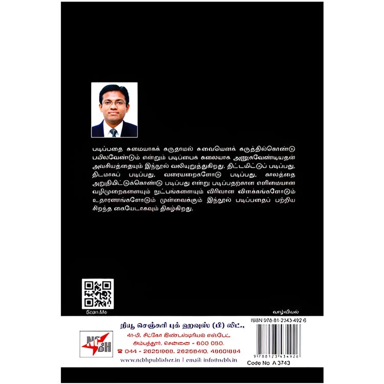 Details : Category : Self Help ISBN: 9788123434926 Author : Dr.R.Ananthakumar / டாக்டர் ஆர். அனந்தகுமார் Weight : 200.00gm Binding : Paper Back Language : Tamil Publishing Year : 2017 படித்தாலே இனிக்கும் : படிப்பதை சுமையாகக் கருதாமல் சுவையெனக் கருத்தில்கொண்டு பயிலவேண்டும் என்றும் படிப்பைக் கலையாக அணுகவேண்டியதன் அவசியத்தையும் இந்நூல் வலியுறுத்துகிறது, திட்டமிட்டுப் படிப்பது, திடமாகப் படிப்பது, வரையறைகளோடு படிப்பது, காலத்தை அறுதியிட்டுக்கொண்டு படிப்பது என்று படிப்பதற்கான எளிமையான வழிமுறைகளையும் நுட்பங்களையும் விரிவான விளக்கங்களோடும் உதாரணங்களோடும் முன்வைக்கும் இந்நூல் படிப்பதைப் பற்றிய சிறந்த கையேடாகவும் திகழ்கிறது. |