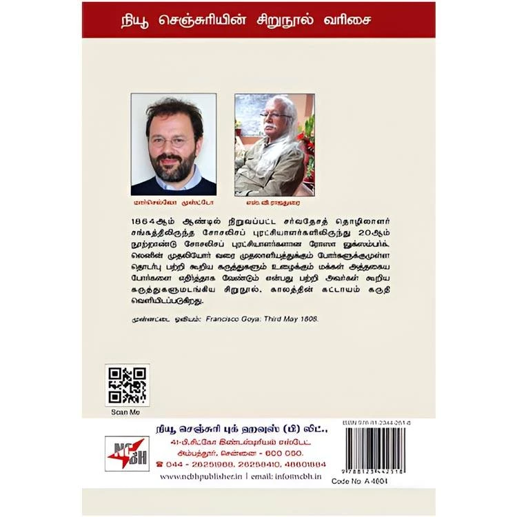 Details : Category : Marxism ISBN : 9788123442518 Author : S.V. Rajadurai Weight : 100.00 gm Binding : Paper Back Language : Tamil Publishing Year : 2022 Page : 39 Code no : A4604 போரும் இடதுசாரிகளும் : 1864ஆம் ஆண்டில் நிறுவப்பட்ட சர்வதேசத் தொழிலாளர் சங்கத்திலிருந்த சோசலிசப் புரட்சியாளர்களிலிருந்து 20ஆம் நூற்றாண்டு சோசலிசப் புரட்சியாளர்களான ரோஸா லுக்ஸம்பர்க் லெனின் முதலியோர் வரை முதலாளியத்துக்கும் போர்களுக்குமுள்ள தொடர்பு பற்றி கூறிய கருத்துகளும் உழைக்கும் மக்கள் அத்தகைய போர்களை எதிர்த்தாக வேண்டும் என்பது பற்றி அவர்கள் கூறிய கருத்துக்களுமடங்கிய சிறுநூல். காலத்தின் கட்டாயம் கருதி வெளியிடப்படுகிறது. |
