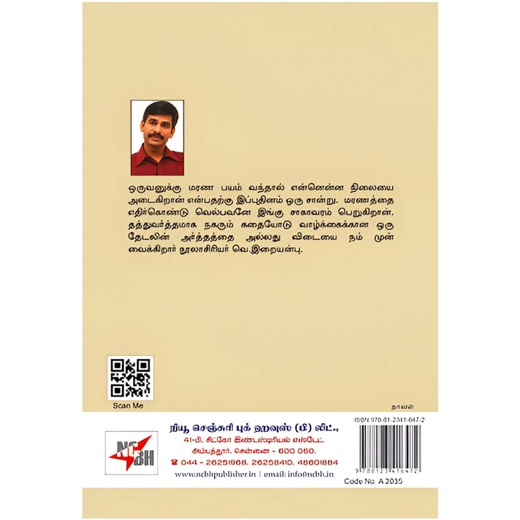 Details : Edition : 15 Category : Self Help ISBN : 9788123416472 Author : V. Iraianbu Weight : 100.00 gm Binding : Paper Back Language : Tamil Page : 228 Publishing Year : 2024 Code no : A2035 சாகாவரம் / Sagavaram : ஒருவனுக்கு மரண பயம் வந்தால் என்னென்ன நிலையை அடைகிறான் என்பதற்கு இப்புதினம் ஒரு சான்று. மரணத்தை எதிர்கொண்டு வெல்பவனே இங்கு சாகாவரம் பெறுகிறான். தத்துவர்த்தமாக நகரும் கதையோடு வாழ்க்கைக்கான ஒரு தேடலின் அர்த்தத்தை அல்லது விடையை நம் முன் வைக்கிறார் நூலாசிரியர் வெ.இறையன்பு. |