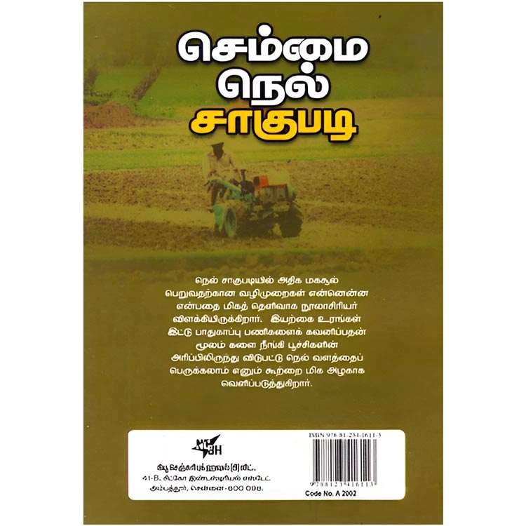 Details : Category : Agriculture/Organism ISBN : 9788123416113 Author : T. Purusothaman Weight : 100.00 gm Binding : Paper Back Language : Tamil Publishing Year : 2009 Pages : 196 Code no : A2002 செம்மை நெல் சாகுபடி : நெல் சாகுபடியில் அதிக மகசூல் பெறுவதற்கான வழிமுறைகள் என்னென்ன என்பதை மிகத் தெளிவாக நூலாசிரியர் விளக்கியிருக்கிறார். இயற்கை உரங்கள் இட்டு பாதுகாப்பு பணிகளைக் கவனிப்பதன் மூலம் களை நீங்கி பூச்சிகளின் அரிப்பிலிருந்து விடுபட்டு நெல் வளத்தைப் பெருக்கலாம் எனும் கூற்றை மிக அழகாக வெளிப்படுத்துகிறார். |