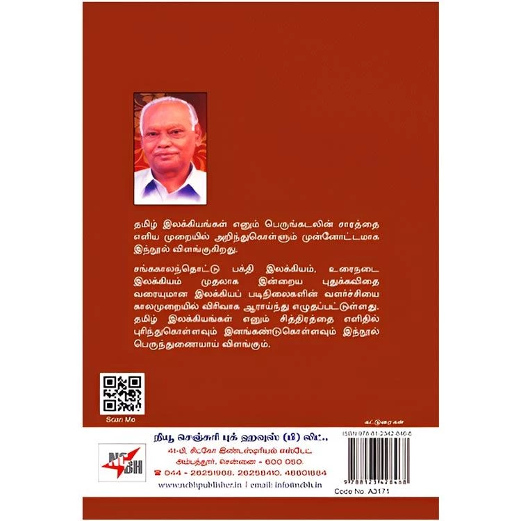 Details : ISBN : Articles ISBN : 9788123428468 Author : P.S. Jesudasan Weight : 100.00 gm Binding : Paper Back Language : Tamil Publishing Year : 2014 Code no : A3171 Pages : 204 தமிழ் இலக்கிய வரலாறு : தமிழ் இலக்கியங்கள் எனும் பெருங்கடலின் சாரத்தை எளிய முறையில் அறிந்துகொள்ளும் முன்னோட்டமாக இந்நூல் விளங்குகிறது. சங்ககாலந்தொட்டு பக்தி இலக்கியம், உரைநடை இலக்கியம் முதலாக இன்றைய புதுக்கவிதை வரையுமான இலக்கியப் படிநிலைகளின் வளர்ச்சியை காலமுறையில் விரிவாக ஆராய்ந்து எழுதப்பட்டுள்ளது. தமிழ் இலக்கியங்கள் எனும் சித்திரத்தை எளிதில் புரிந்துகொள்ளவும் இனங்கண்டுகொள்ளவும் இந்நூல் பெருந்துணையாய் விளங்கும். |