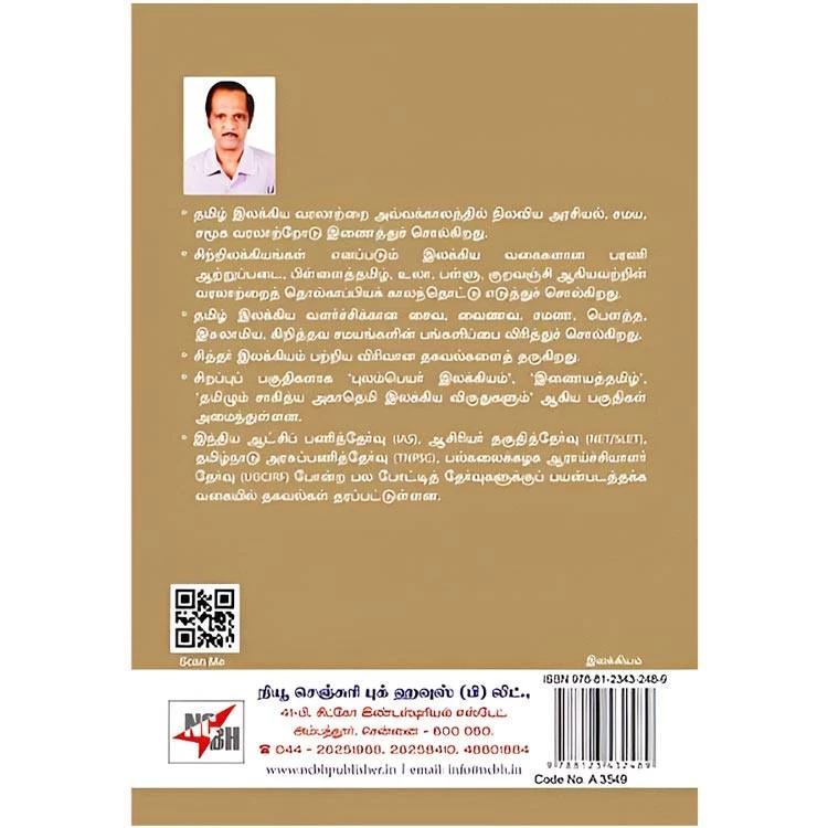 Details : ISBN : 9788123432489 Author : K. Raasa Weight : 100.00 gm Binding : Paper Back Language : Tamil Publishing Year : 2016 Code no : A3549 தமிழ் இலக்கிய வரலாறு : தமிழ் இலக்கிய வரலாற்றை அவ்வக்காலத்தில் நிலவிய அரசியல். சமய, சமூக வரலாற்றோடு இணைத்துச் சொல்கிறது தமிழ் இலக்கிய வரலாறு சிற்றிலக்கியங்கள் எனப்படும் இலக்கிய வகைகளான பரணி ஆற்றுப்படை, பிள்ளைத்தமிழ், உலா, பள்ளு, குறவஞ்சி ஆகியவற்றின் வரலாற்றைத் தொல்காப்பியக் காலந்தொட்டு எடுத்துச் சொல்கிறது. தமிழ் இலக்கிய வளர்ச்சிக்கான சைவ, வைணவ, சமண, பௌத்த, இசுலாமிய, கிறித்தவ சமயங்களின் பங்களிப்பை விரித்துச் சொல்கிறது. * சித்தர் இலக்கியம் பற்றிய விரிவான தகவல்களைத் தருகிறது. சிறப்புப் பகுதிகளாக ‘புலம்பெயர் இலக்கியம்’. ‘இணையத்தமிழ்’, ‘தமிழும் சாகித்ய அகாதெமி இலக்கிய விருதுகளும்” ஆகிய பகுதிகள் அமைந்துள்ளன. இந்திய ஆட்சிப் பணித்தேர்வு (145), ஆசிரியர் தகுதித்தேர்வு (NET/SLET], தமிழ்நாடு அரசுப்பணித்தேர்வு (TNPSC), பல்கலைக்கழக ஆராய்ச்சியாளர் தேர்வு (UGCIRF) போன்ற பல போட்டித் தேர்வுகளுக்குப் பயன்படத்தக்க வகையில் தகவல்கள் தரப்பட்டுள்ளன. |