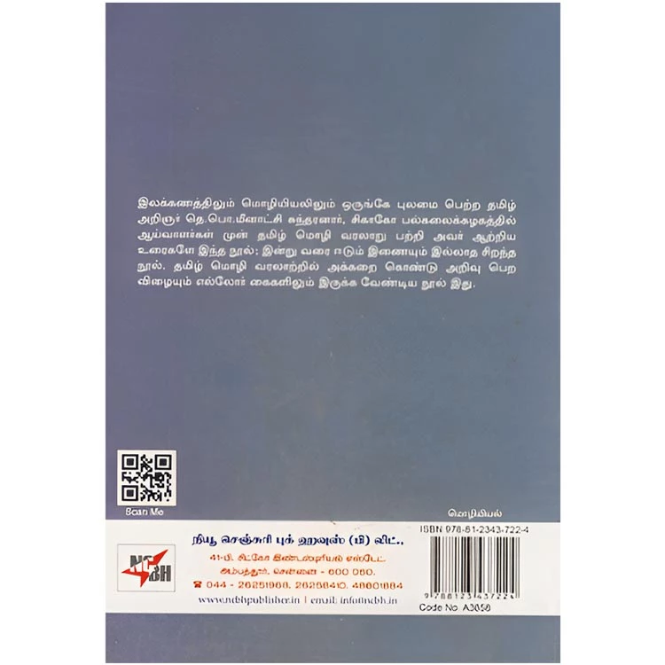 Details : ISBN : 9788123437224 Author : T.P. Meenakshi Sundaranar Weight : 150.00 gm Binding : Paper Back Language : Tamil Publishing Year : 2018 Code no : A3858 Pages : 340 தமிழ் மொழி வரலாறு : இலக்கணத்திலும் மொழியியலிலும் ஒருங்கே புலமை பெற்ற தமிழ் அறிஞர் தெ.பொ.மீனாட்சி சுந்தரனார், சிகாகோ பல்கலைக்கழகத்தில் ஆய்வாளர்கள் முன் தமிழ் மொழி வரலாறு பற்றி அவர் ஆற்றிய உரைகளே இந்த நூல்; இன்று வரை ஈடும் இணையும் இல்லாத சிறந்த நூல். தமிழ் மொழி வரலாற்றில் அக்கறை கொண்டு அறிவு பெற விழையும் எல்லோர் கைகளிலும் இருக்க வேண்டிய நூல் இது. |