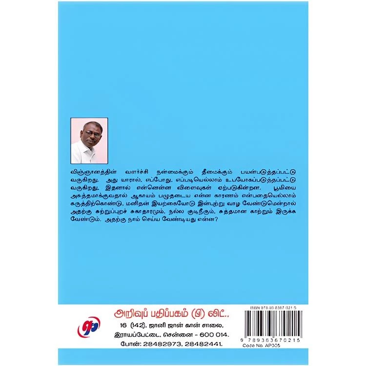 Details : Category : General Knowledge ISBN : 9789383670215 Author : Sugumaran Weight : 100.00 gm Binding : Paper Back Language : Tamil Code no : AP305 Uyirum Ulagamum : விஞ்ஞானத்தின் வளர்ச்சி நன்மைக்கும் தீமைக்கும் பயன்படுத்தப்பட்டு வருகிறது. அது யாரால், எப்போது, எப்படியெல்லாம் உபயோகப்படுத்தப்பட்டு வருகிறது. இதனால் என்னென்ன விளைவுகள் ஏற்படுகின்றன. பூமியை அசுத்தமாக்குவதால் ஆகாயம் பழுதடைய என்ன காரணம் என்பதையெல்லாம் கருத்திற்கொண்டு, மனிதன் இயற்கையோடு இன்புற்று வாழ வேண்டுமென்றால் அதற்கு சுற்றுப்புறச் சுகாதாரமும், நல்ல குடிநீரும், சுத்தமான காற்றும் இருக்க வேண்டும். அதற்கு நாம் செய்ய வேண்டியது என்ன? |