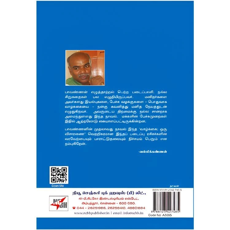 Details : ISBN : 9788123427485 Author : Paavannan Weight : 100.00 gm Binding : Paper Back Language : Tamil Publishing Year : Code no : A3095 வாழ்க்கை ஒரு விசாரணை : பாவண்ணன் எழுத்தாற்றல் பெற்ற படைப்பாளி. நல்ல சிறுகதைகள் பல எழுதியிருப்பவர், மனிதர்களை அவர்களது இயல்புகளை, பேச்சு வழக்குகளை – பொதுவாக வாழ்க்கையை – நன்கு கவனித்து மனித நேயத்துடன் எழுதுகிறவர். அவருடைய திறமைக்கு நல்ல சான்றாக அமைந்துள்ளது இந்த நாவல், மக்களின் பேச்சுமுறைகள் இதில் ஆற்றலோடு கையாளப்பட்டிருக்கின்றன. பாவண்ணனின் முதலாவது நாவல் இந்த ‘வாழ்க்கை: ஒரு விசாரணை’ வெற்றிகரமான இந்தப் படைப்பு ரசிகர்களின் வரவேற்பையும் பாராட்டுதலையும் நிச்சயம் பெறும் என நம்புகிறேன். -வல்லிக்கண்ணன். |