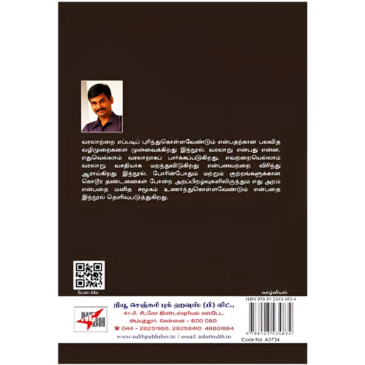 Details : Category : History ISBN : 9788123434834 Author : V.Iraianbu Weight : 100.00 gm Binding : Paper Back Language : Tamil Publishing Year : 2000 Code no : A3734 வரலாறு உணர்த்தும் அறம் : வரலாற்றை எப்படிப் புரிந்துகொள்ளவேண்டும் என்பதற்கான பலவித வழிமுறைகளை முன்வைக்கிறது இந்நூல். வரலாறு என்பது என்ன, எதுவெல்லாம் வரலாறாகப் பார்க்கப்படுகிறது. எவற்றையெல்லாம் வரலாறு வசதியாக மறந்துவிடுகிறது என்பனவற்றை விரிந்து ஆராய்கிறது இந்நூல். போரின்போதும் மற்றும் குற்றங்களுக்கான கொடூர தண்டனைகள் போன்ற அறப்பிறழ்வுகளிலிருந்தும் எது அறம் என்பதை மனித சமூகம் உணர்ந்துகொள்ளவேண்டும் என்பதை இந்நூல் தெளிவுபடுத்துகிறது. |