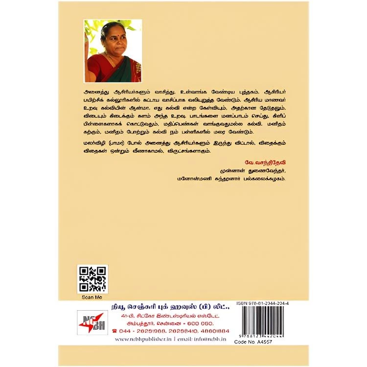 Details : Category : Novel Author : Bama ISBN : 9788123442044 Weight : 100.00 gm Binding : Paper Back Language : Tamil Publishing Year : 2022 Pages : 198 Code no : A4557 விருட்சங்களாகும் விதைகள் : அனைத்து ஆசிரியர்களும் வாசித்து, உள்வாங்க வேண்டிய புத்தகம். ஆசிரியர் பயிற்சிக் கல்லூரிகளில் கட்டாய வாசிப்பாக வலியுறுத்த வேண்டும். ஆசிரிய மாணவர் உறவு கல்வியின் ஆன்மா. எது கல்வி என்ற கேள்வியும், அதற்கான தேடுதலும், விடையும் கிடைக்கும் களம் அந்த உறவு. பாடங்களை மனப்பாடம் செய்து. கிளிப் பிள்ளைகளாகக் கொட்டுவதும், மதிப்பெண்கள் வாங்குவதுமல்ல கல்வி. மனிதம் கற்கும். மனிதம் போற்றும் கல்வி நம் பள்ளிகளில் மலர வேண்டும். மலர்விழி (பாமா) போல் அனைத்து ஆசிரியர்களும் இருந்து விட்டால், விதைக்கும் விதைகள் ஒன்றும் வீணாகாமல், விருட்சங்களாகும். வே.வசந்திதேவி முன்னாள் துணைவேந்தர், மனோன்மணி சுந்தரனார் பல்கலைக்கழகம். |