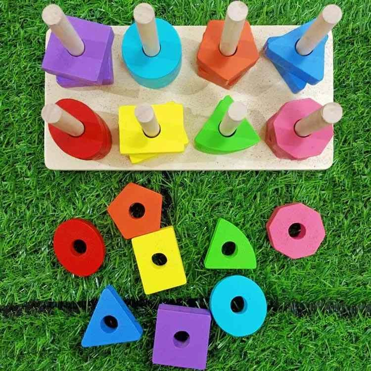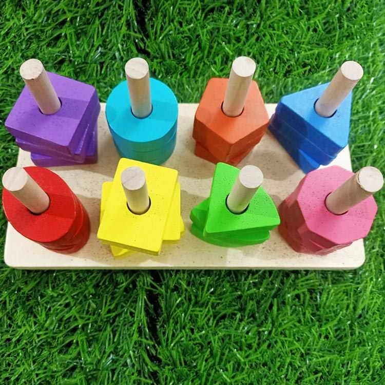 8 Column Wooden Shape Sorter Building Blocks