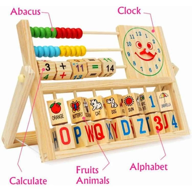 Description : Kids will learn clock hours and minutes. Beads will help kids' sensory development. Engaging toys for kids. The educational toy helps kids to learn the alphabet and numbers and basic math calculations. |