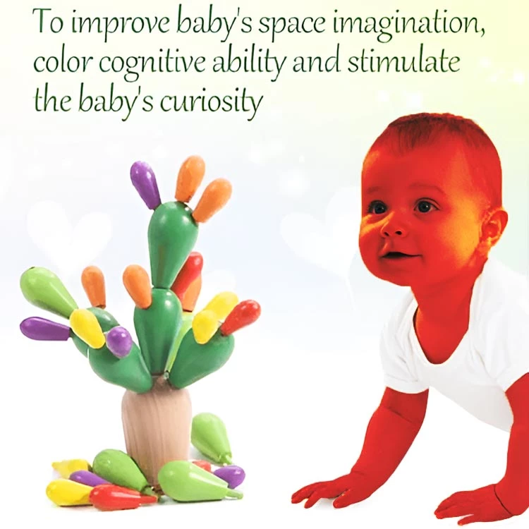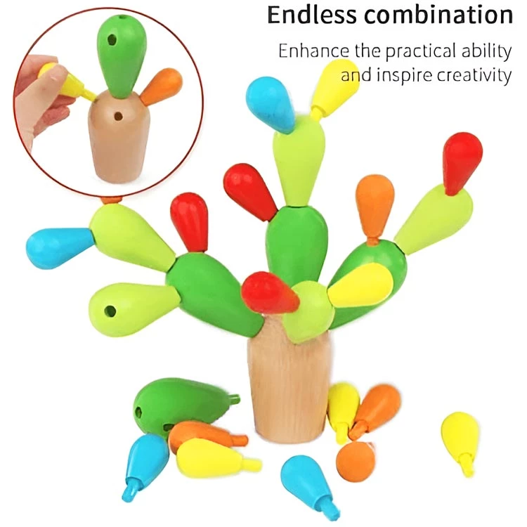 Multicolor Wooden Cactus to Help Hand Eye Coordination to Kids