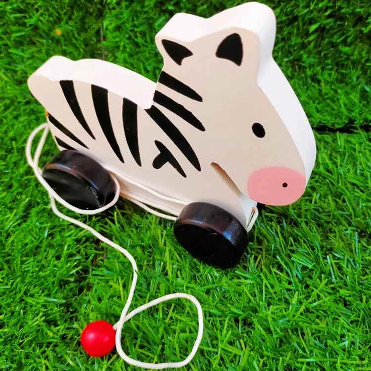 Pull Along Wooden Zebra Toy with Rope