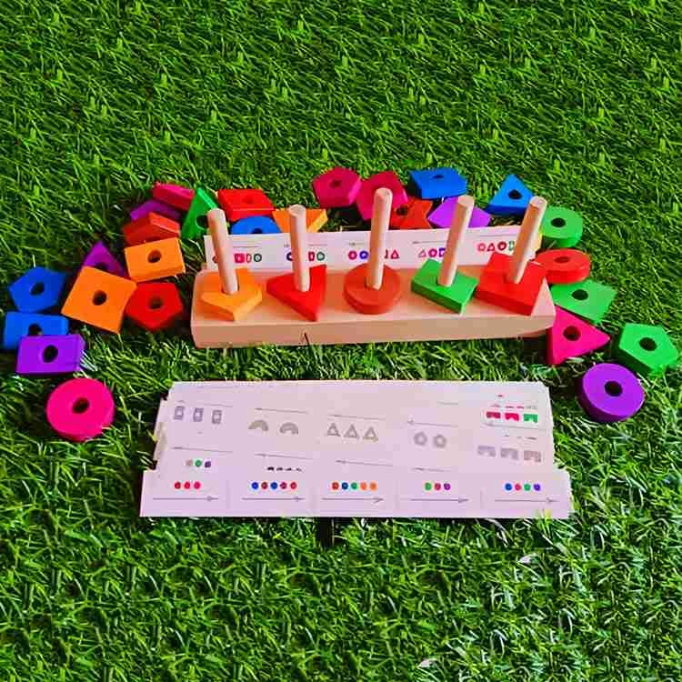 Wooden Multicolor Block Matching Puzzle on Shapes